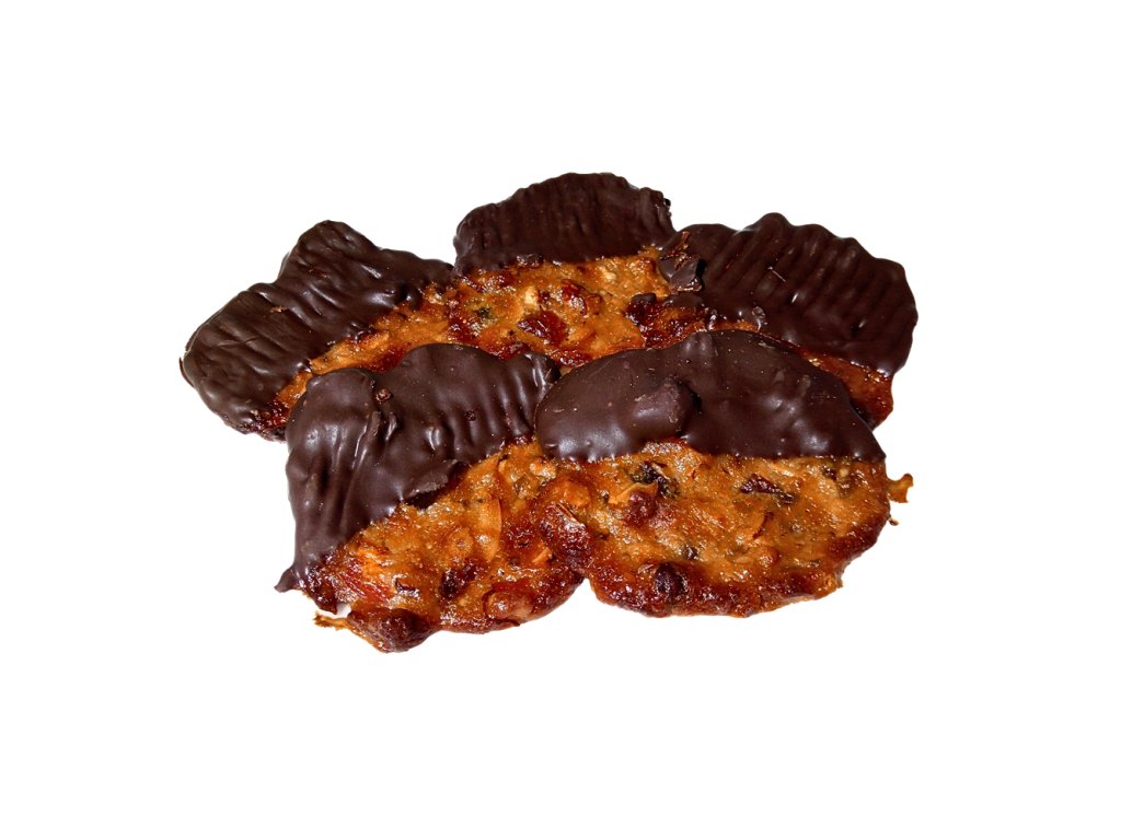 Mlieko bez laktózy (trvanlivé mlieko polotučné, enzým laktáza, tuk najmenej 1,5 %, množstvo laktózy max. 0,01 %), ovocná zmes kandovaná (ovocie a zelenina v rôznych pomeroch, cukor, glukózovo - fruktózový sirup, regulátor kyslosti – kyselina citrónová, konzervant – sorban draselný, aróma koncentrát z šťavy čiernej mrkvy, farbivá – meďnaté komplexy chlorofylov a chlorofylínov, extrakt z červenej papriky, kurkumin), cukor, cukor vanilkový, zmes bezlepková (múka z bielej ryže, múka z hnedej ryže, kukuričný škrob, ovsené vločky bez lepku* – mleté, tapiokový modifikovaný škrob, guma guar (zhutňovač), kypřicí prášok (bramborový škrob, kypřicí látky: vinany draselné, hydrogenuhličitan sodný), tmavá poleva (cukor, ztužené rastlinné tuky, kakaový prášok, emulgátor - sójový lecitin, aróma), vlašské orechy, lieskové orechy, mandle