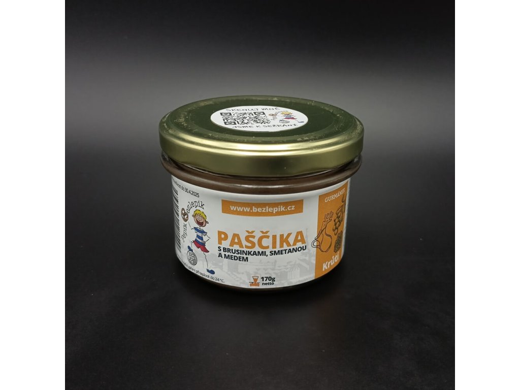 Bezlepková PAŠTÉTA KRŮTIA s brusnicami, smotanou a medom 170 g