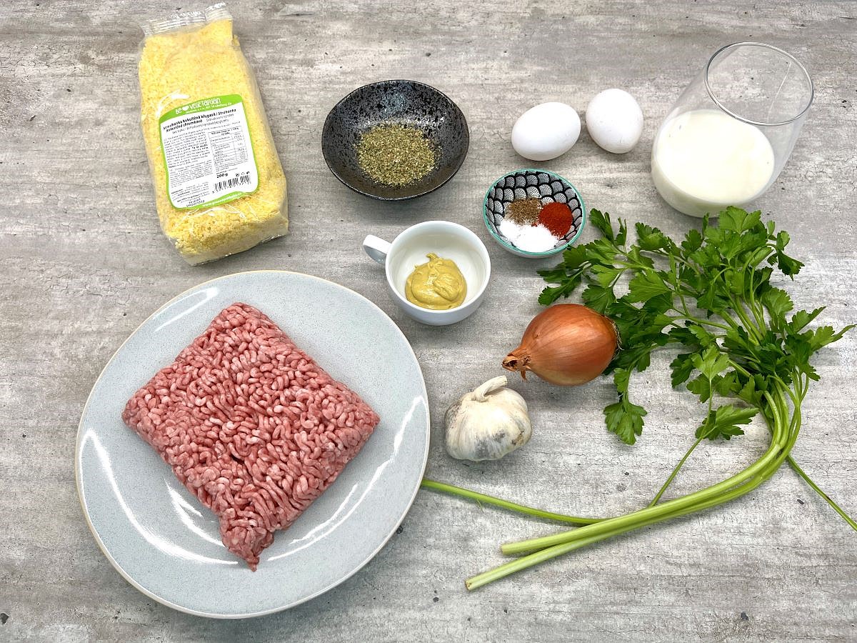 - 700 g mletého bravčového a hovädzieho mäsa v pomeru cca 1:1