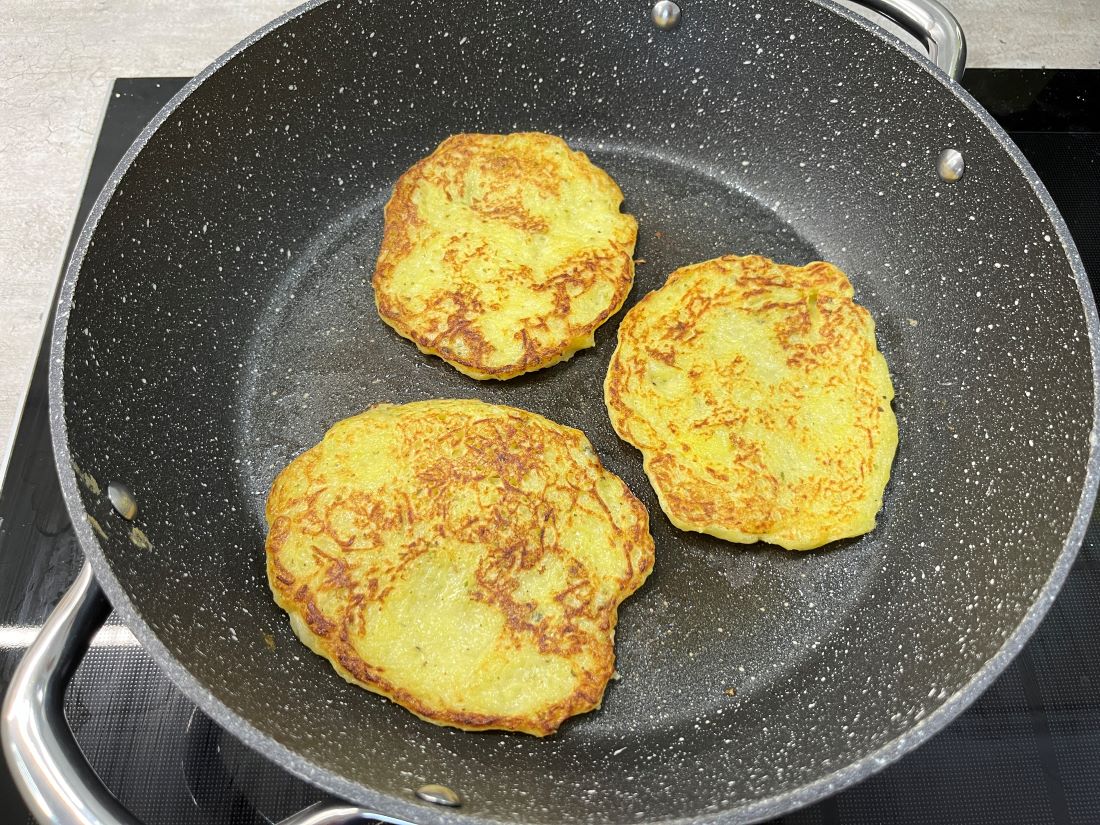 2. Jednotlivé placky smažíme na vrstve rozohriateho oleja na strednej teplote z oboch strán dozlatista. Stačia približne 3 minúty z každej strany. Zemiakové placky sa snažíme smažiť čo najtenšie, aby sa v strede dobre prepiekli a po okrajoch boli pekne chrumkavé. Podávame ešte teplé napríklad so zakysanou smotanou.