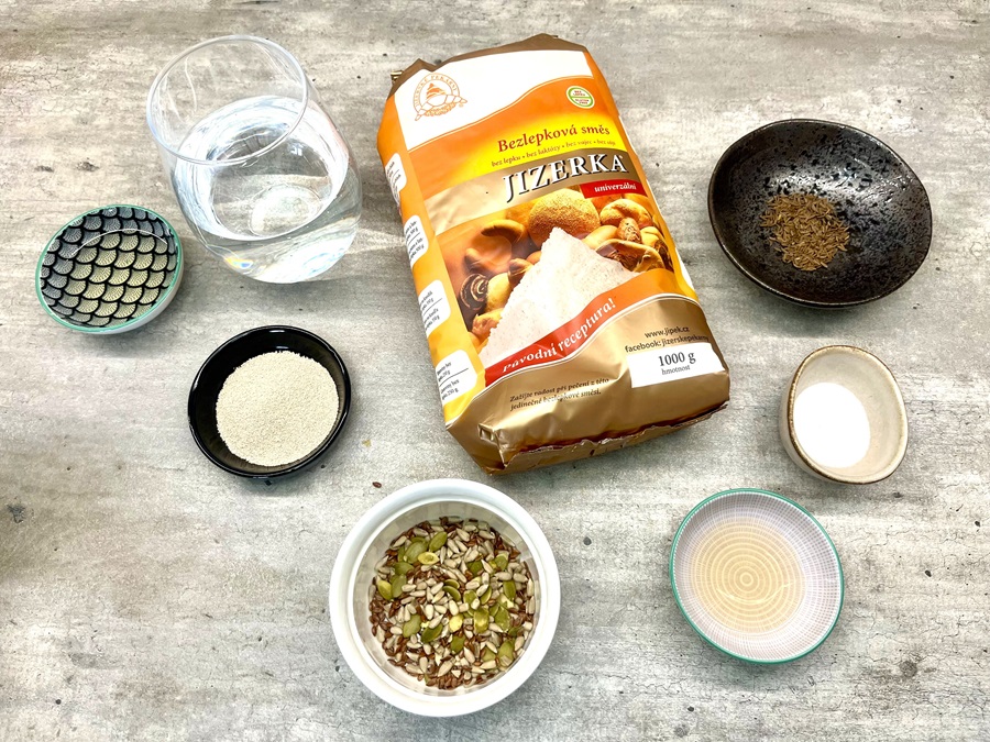 - Jizerku si preosejeme do misy, vmiešame soľ, droždie a postupne prilievame vodu a olej. Nakoniec primiešame semienka a rascu. Zmes dôkladne premiešame a spracujeme na hladké cesto. Hotové cesto nalejeme do formy na chlieb alebo inej formy vhodnej na pečenie.