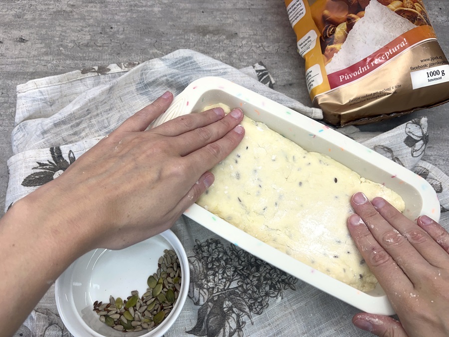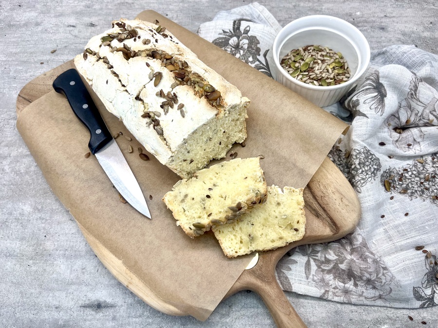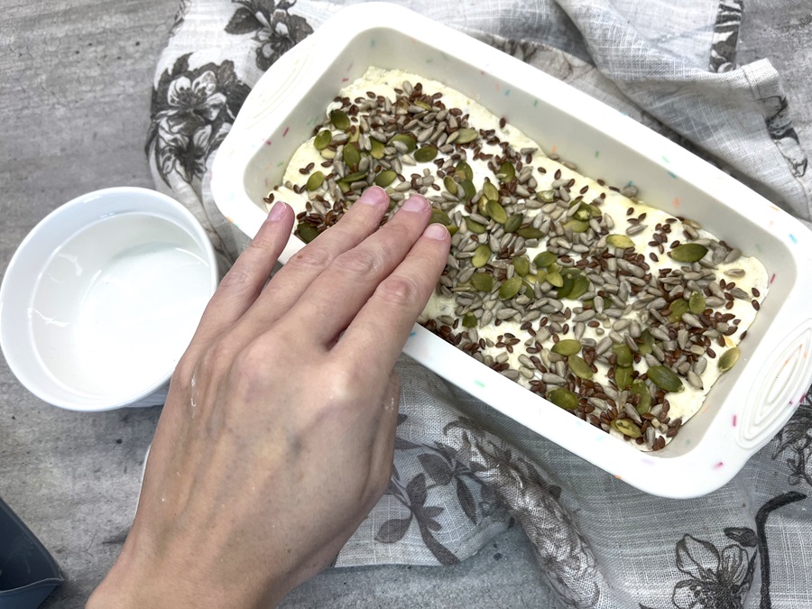 - Posypeme zvyšnými semienkami a pečieme pri 190 °C približne 30 minút. Či je chlieb už prepečený, môžeme skontrolovať pomocou špajdle. Chlieb necháme trochu vychladnúť, vyklopíme z formy a po úplnom vychladnutí podávame.