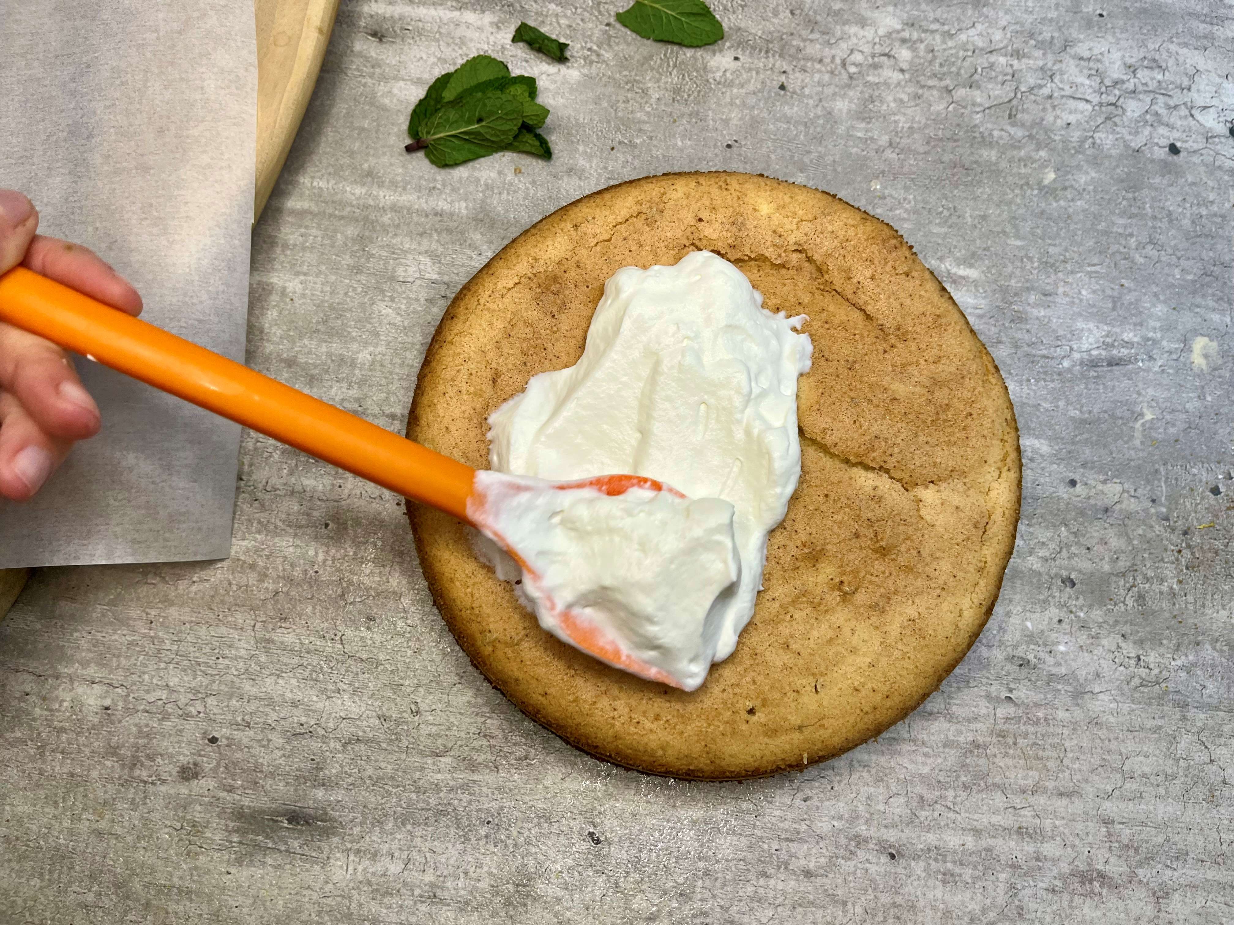 Tento koláč môžete upiecť aj pri slávnostnejších príležitostiach. Zároveň je veľmi jednoduchý na prípravu a budete ho mať hotový za chvíľku. Jemný piškótový korpus, ktorý sa spája s lahodnou nadýchanou šľahačkou – dokonalá kombinácia. Koláču navyše dodáva sviežosť citrónová kôra a výrazné mätové pesto.