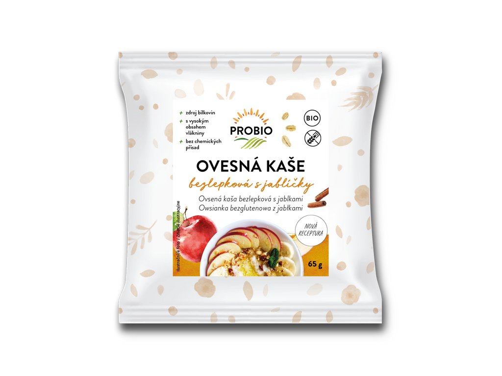 Pro-Bio Kaša ovsená bezlepková s jablčkami jednoporcová 65 g BIO